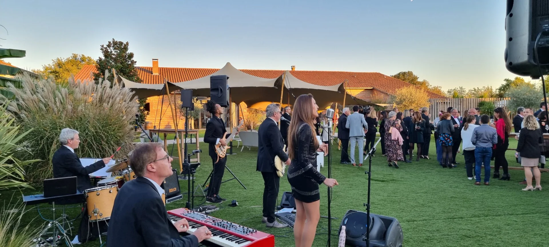 Petit espace ou grande scène, lieu confidentiel ou domaine en plein air : on s’adapte. Nous modulons volume, répertoire et dynamique pour respecter la réglementation des salles et le confort de vos invités. Cocktail, réception d’entreprise, mariage ou anniversaire privé, notre expérience locale en Occitanie et Nouvelle Aquitaine nous permet d’anticiper les contraintes et d’installer une atmosphère live élégante, énergique et toujours maîtrisée.