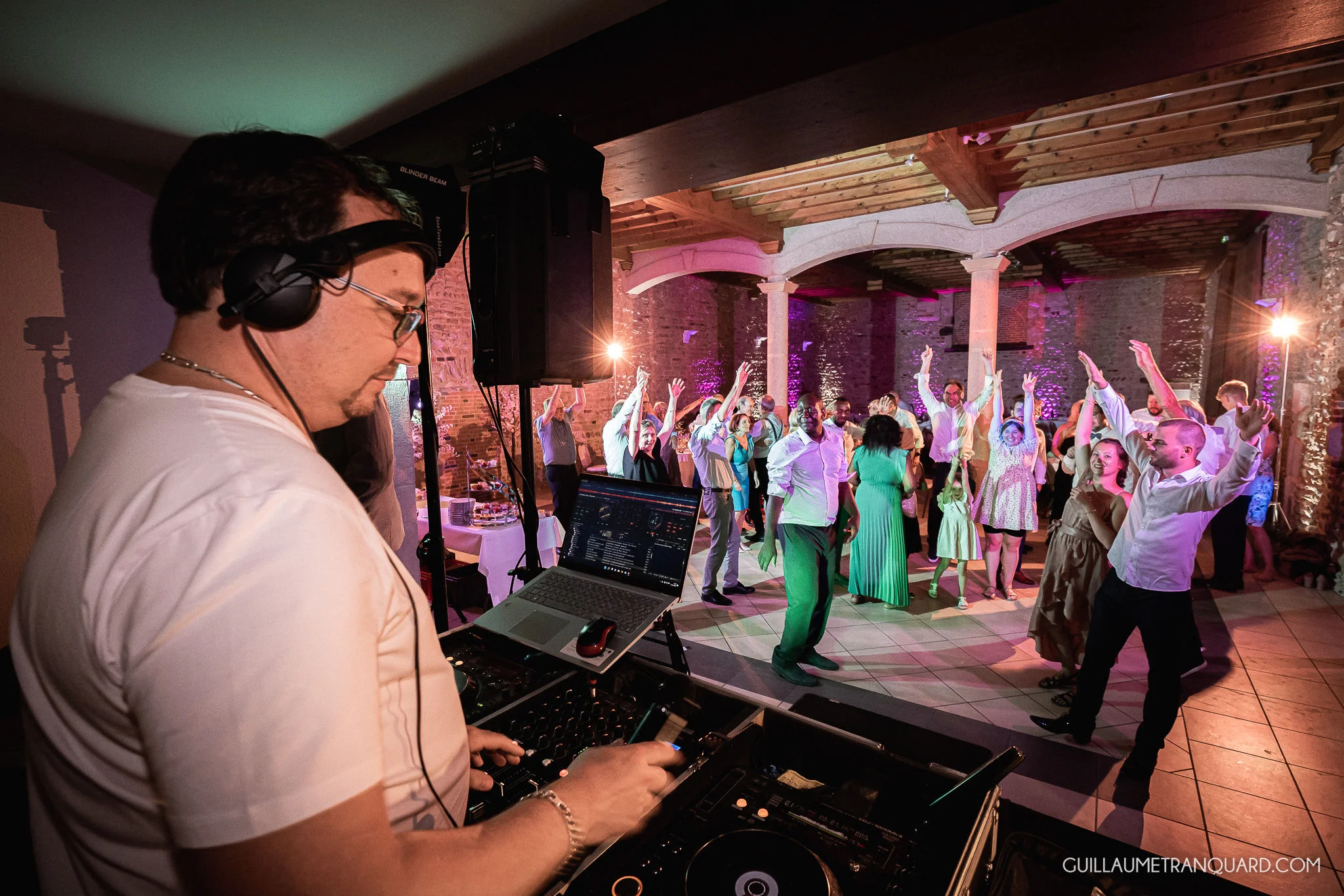 Notre équipe gère l'installation, l'éclairage d'ambiance, la piste de danse si elle est prévue, et les transitions musicales. Vous conservez la maîtrise du programme, tandis que nous prenons en charge la partie technique et la conduite musicale sur site.