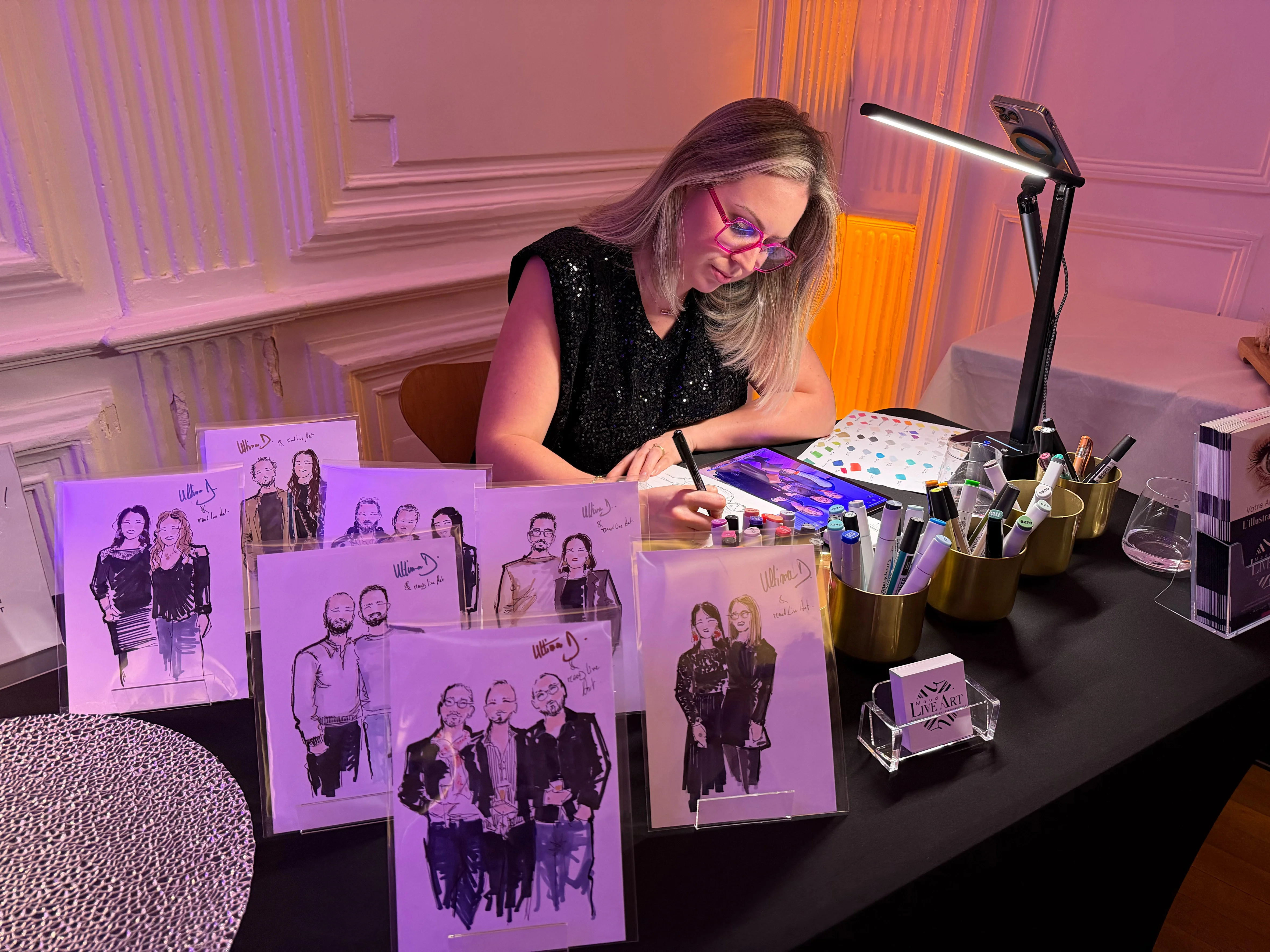MAUD LIVE ART est une table d’artiste, qui sublime votre événement : Une performance d’illustration en direct ! C’est une expérience artistique moderne, pour tous vos événements professionnels : Séminaires, Team Building, lancement de Produit, Corporate, Fête de fin d’année..