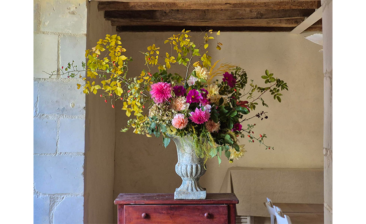 Pour ne plus renier mes valeurs écoresponsables, j'ai décidé d'exercer mon métier de fleuriste différemment. Dans mes compositions, la saisonnalité prime. Pour m'approvisionner, je travaille avec plusieurs producteurs locaux sur Rungis et en Île de France, en circuit court et en flux tendu. J'ai des fleurs françaises toute l'année, avec une belle diversité.