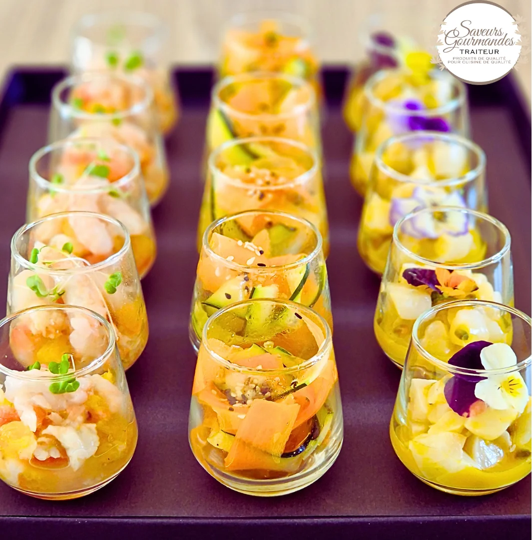Chez Saveurs Gourmandes Traiteur, notre mission est simple : transformer chaque événement en un moment unique et gourmand. Nous accompagnons les entreprises dans l’organisation de séminaires, réunions, déjeuners d’affaires, cocktails et afterworks, en proposant des prestations sur-mesure, élaborées avec des produits frais, locaux et de saison.