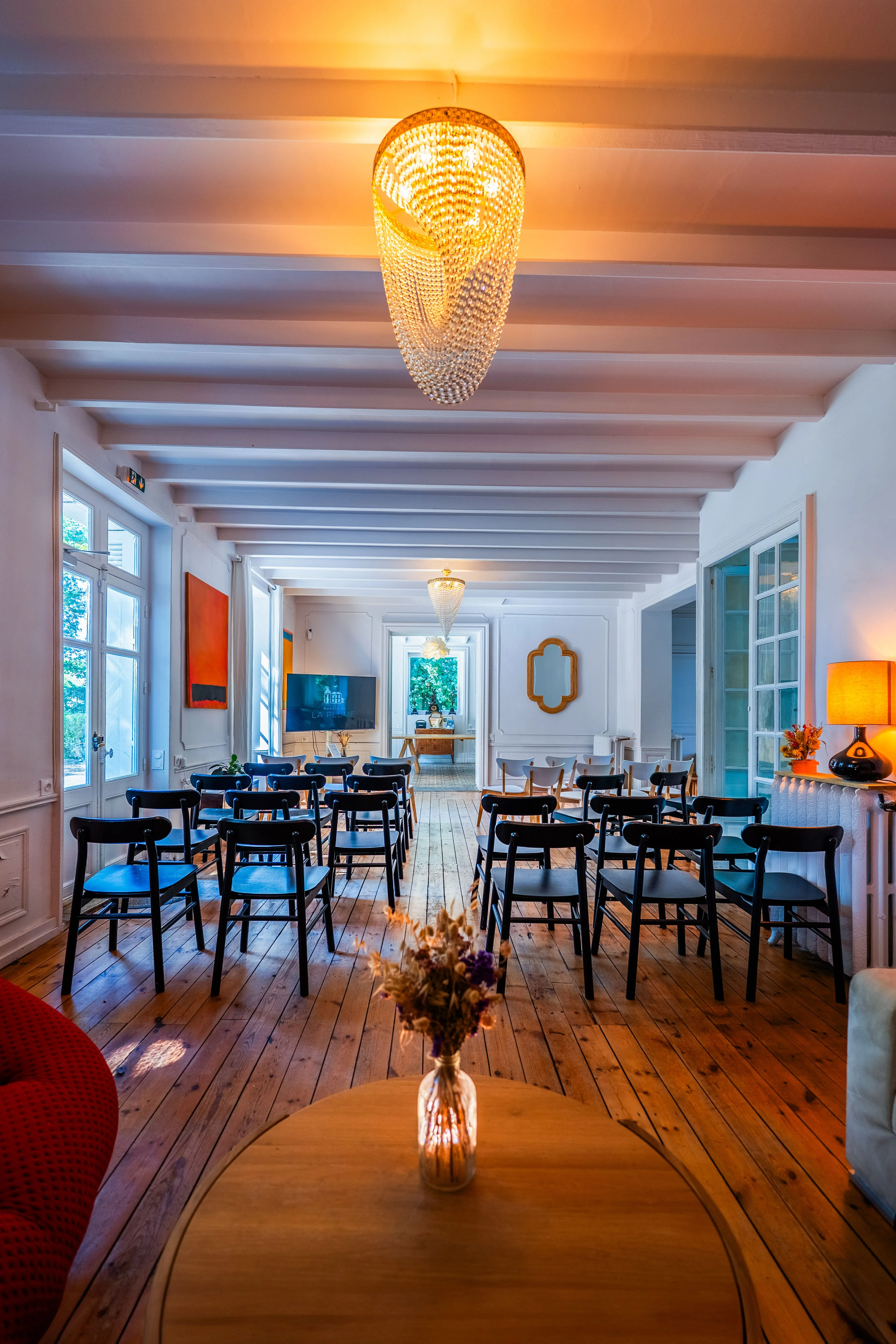 Oui, le Manoir est équipé pour le travail collaboratif : fibre, écran TV 65'', tableaux blancs et mobilier adapté pour des sessions en groupe ou en sous-groupes.