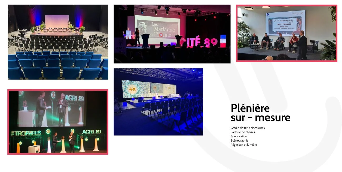 Bien plus qu'un lieu, votre partenaire événementiel clé-en-main Organisez votre événement dans un cadre moderne, polyvalent et entièrement modulable avec Auxerrexpo, un espace pensé pour accueillir toutes vos ambitions