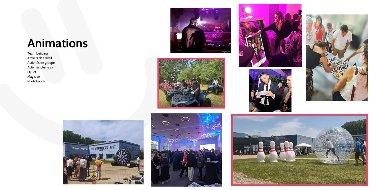 Création de votre événement sur-mesure : concept, scénographie, programme, animation Gestion technique complète : sonorisation, éclairage, audiovisuel, coordination logistique Accompagnement personnalisé : de la première idée à la dernière minute du jour J Un interlocuteur unique, réactif et expérimenté, pour garantir votre tranquillité