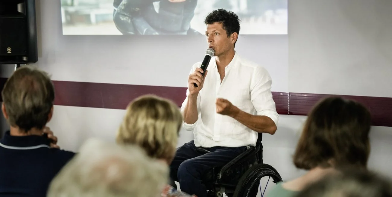 Je suis Guillaume Colin, ingénieur passionné par les défis, devenu sportif de haut niveau après un accident de la vie. Il a fallu réapprendre à vivre, s’adapter et tracer une nouvelle trajectoire. Aujourd’hui, je suis champion du monde de para surf et pionnier du para wingfoil. C’est ce chemin que je raconte à travers mes prises de parole pour offrir un autre regard et faire écho à ce que chacun peut vivre à sa manière.
